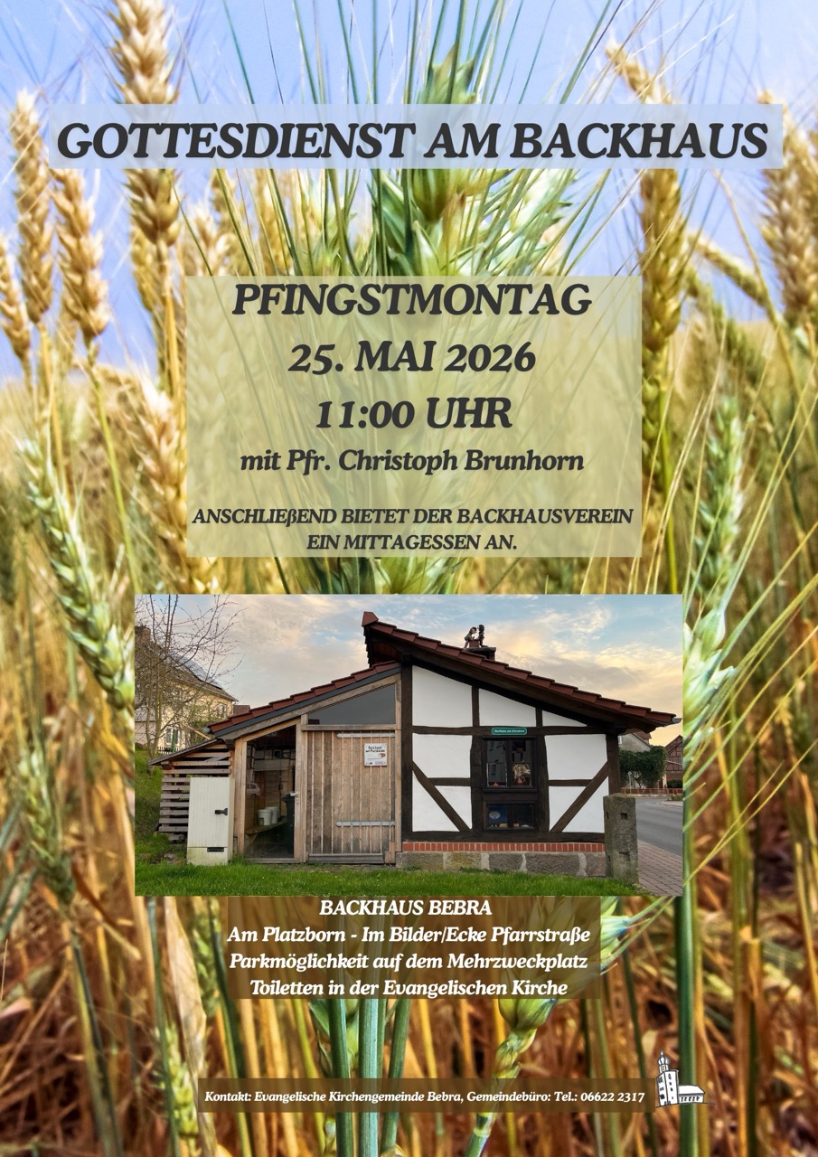 Gottesdienst am Backhaus, Pfingstmontag, 25. Mai, 11 Uhr, Backhaus Bebra, Am Platzborn, Im Bilder/Ecke Pfarrstraße