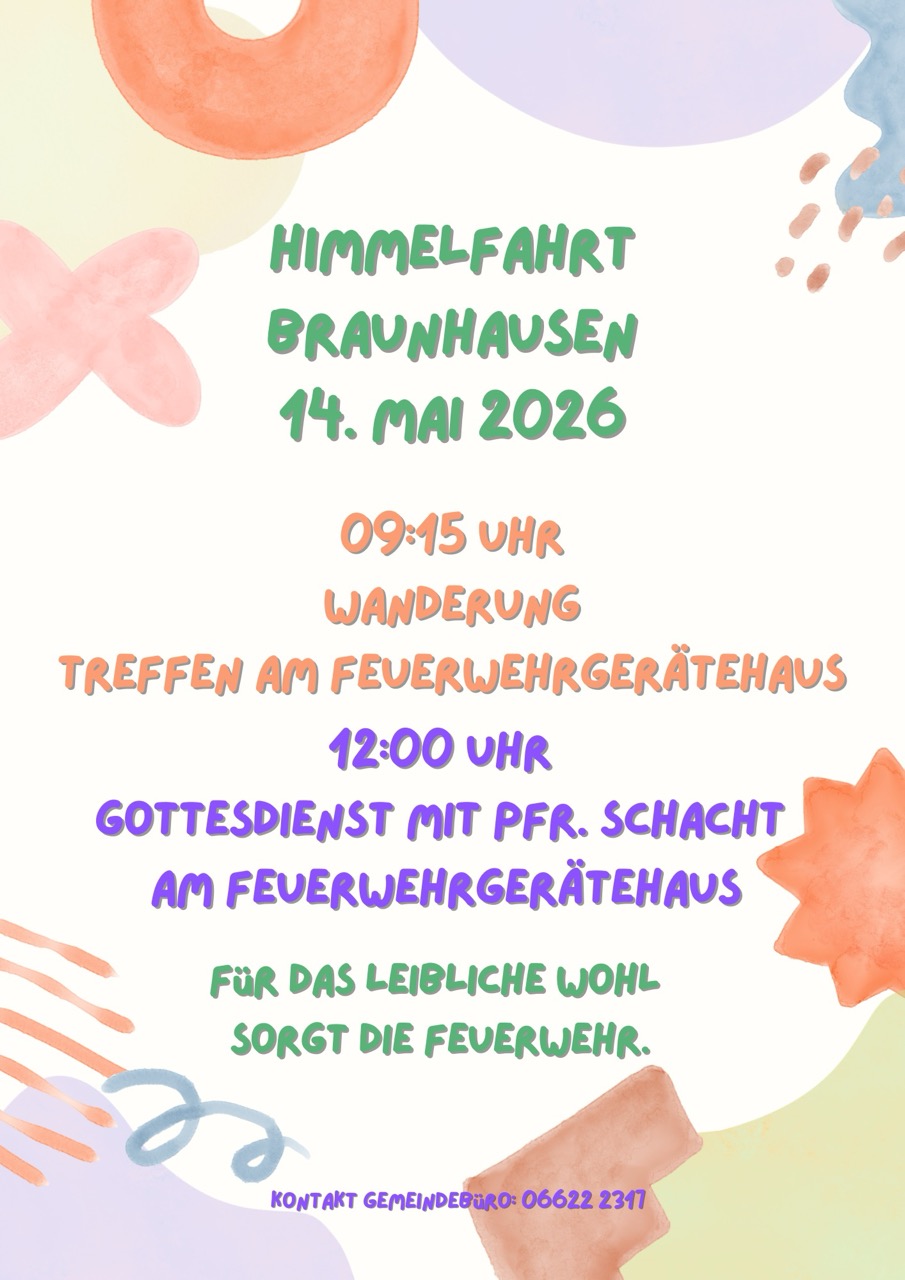 Himmelfahrtsgottesdienst in Braunhausen, Donnerstag, 14. Mai, 12 Uhr, Am Feuerwehrgerätehaus